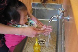 しっかり手を洗って朝のおやつの準備をします。