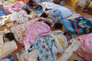 お昼寝の準備をします。出来る事は自分で行います。